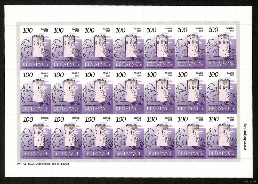 Беларусь. 2012. Стандарт. Каменецкая башня (100р) глянцевая бумага (з.191ц-2012) Лист
