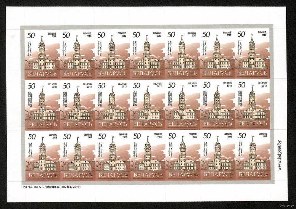 Беларусь. 2012. Стандарт. Могилёвская ратуша (50р) матовая бумага (з.294ц-2013) Лист