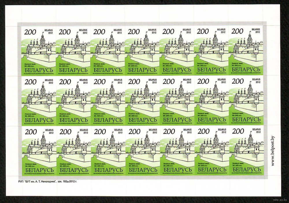 Беларусь. 2012. Стандарт. Несвижский замок (200р) глянцевая бумага (з.192ц-2012) Лист