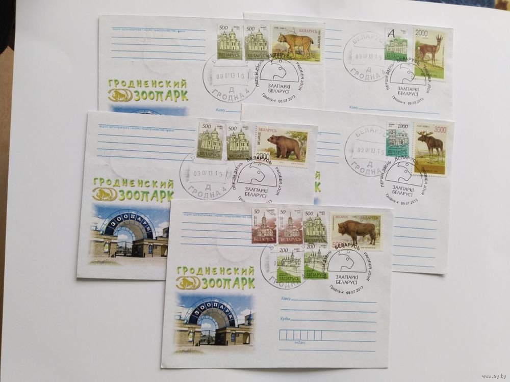 Беларусь 2013 5 почт.конверт со СГ Гродно ЗОО