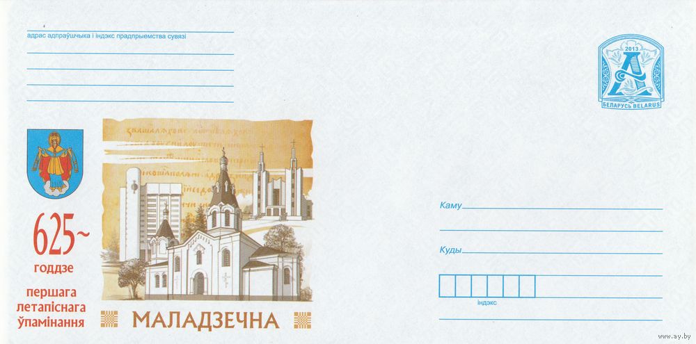 Беларусь 2013 625-летие первого письменного упоминания Молодечно здания города, герб (к4)