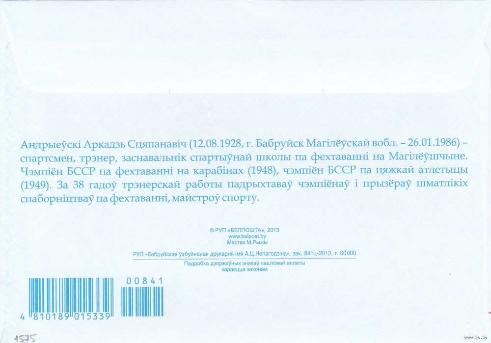 Беларусь 2013 Андриевский Аркадий Степанович. Основатель спортивной школы по фехтованию на Могилевщине (к4)