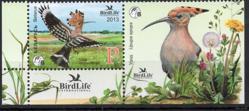 Беларусь 2013. Птица года. Удод. 1 марка+купон 949 (641)