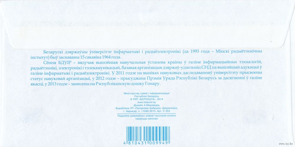 Беларусь 2014 ХМК с ОМ 50 лет со дня создания Белорусского государственного университета информатики и радиоэлектроники (к4)