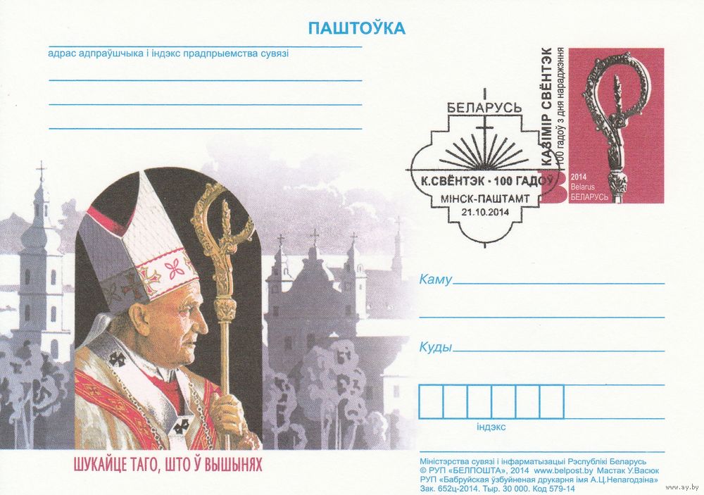 Беларусь 2014 ПК с ОМ со СГ 100 лет со дня рождения Казимира Свёнтка (алб)