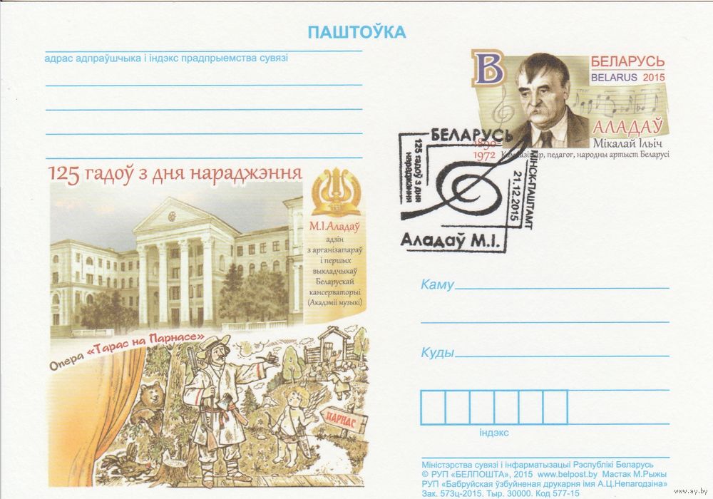 Беларусь 2015 ПК с ОМ со СГ 125 лет со дня рождения Николая Ильича Аладова (алб)