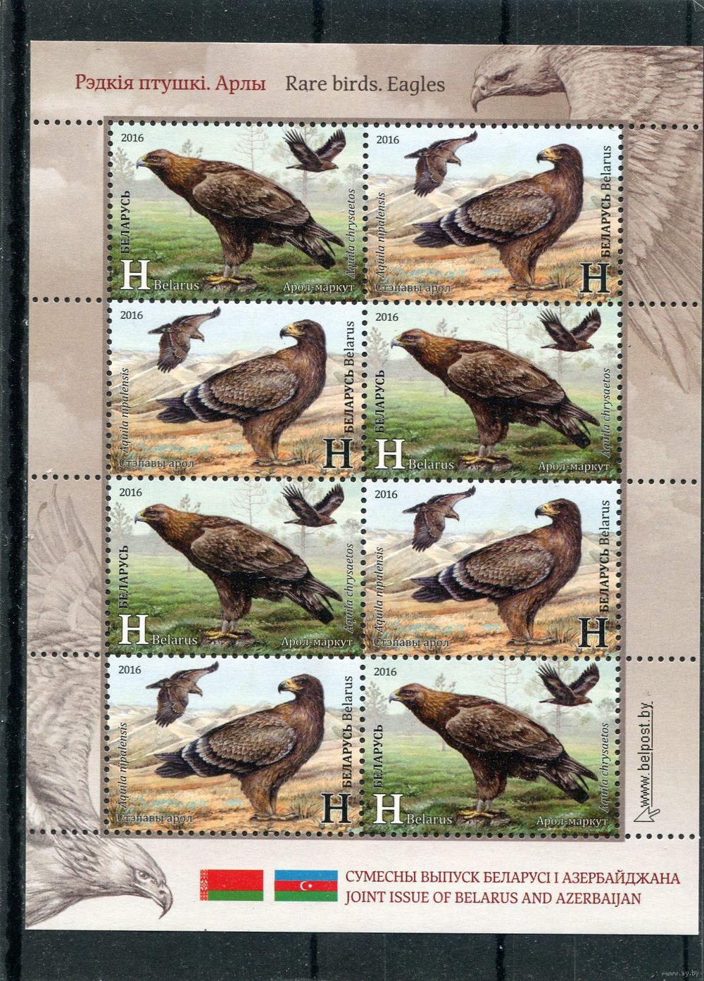 Беларусь 2016. Фауна. Орлы. Совместный выпуск с Азербайджаном. Малый лист