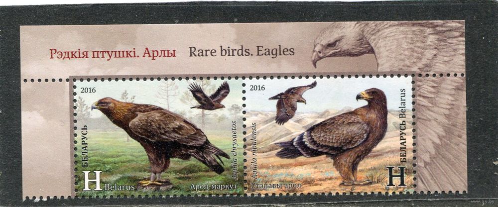 Беларусь 2016. Фауна. Орлы. Совместный выпуск с Азербайджаном. Верхняя сцепка листа