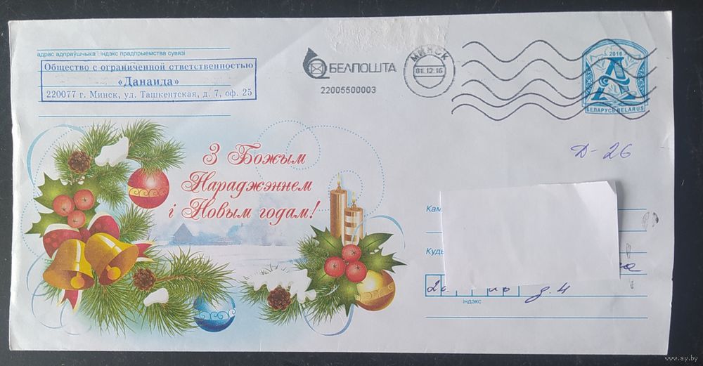 Беларусь 2016 ХМК Пр. почту ,С новым годом.