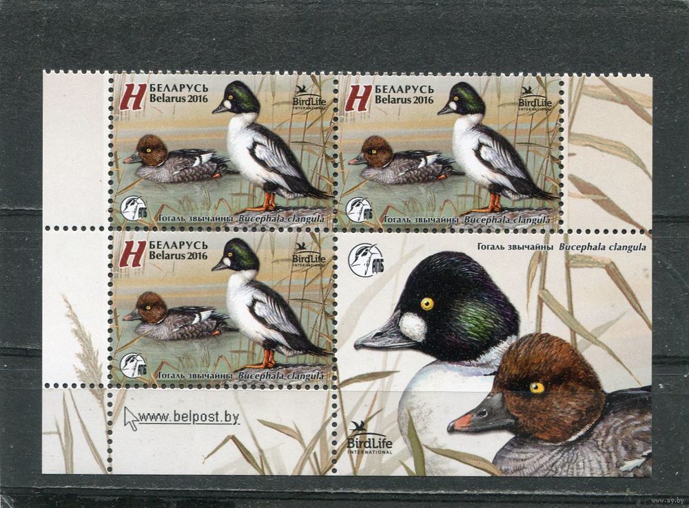 Беларусь 2016. Птица года. Гоголь обыкновенный. Квартблок с купоном