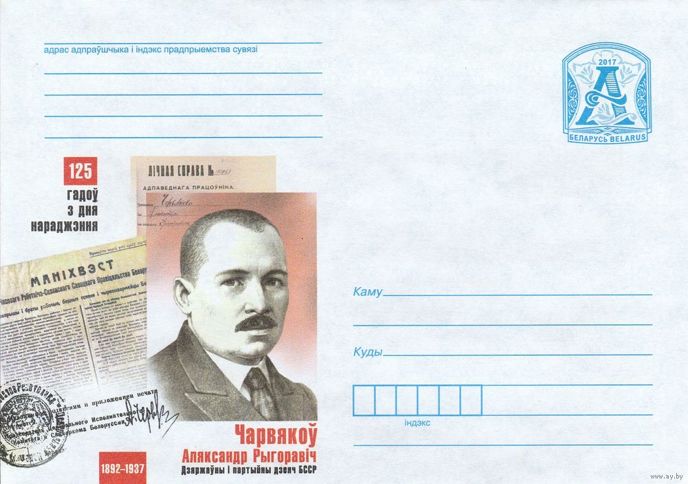 Беларусь 2017 ХМК 25 лет со дня рождения. Червяков Александр Григорьевич. Государственный и партийный деятель БССР (к1)