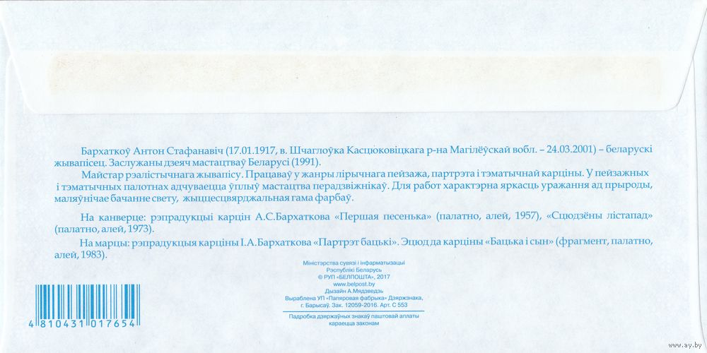 Беларусь 2017 ХМК с ОМ Живопись. А. С. Бархатков (к4)