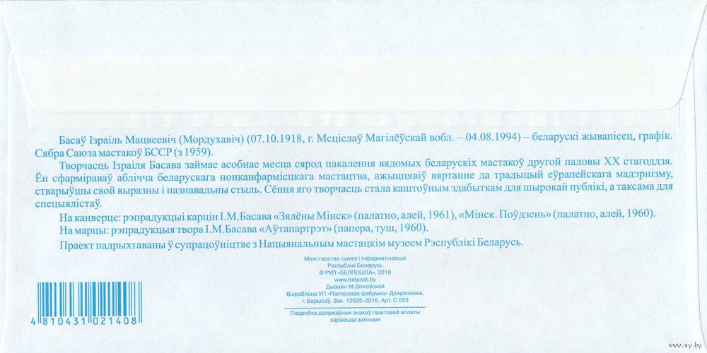 Беларусь 2018 ХМК с ОМ Живопись. Израиль Басов (к4)