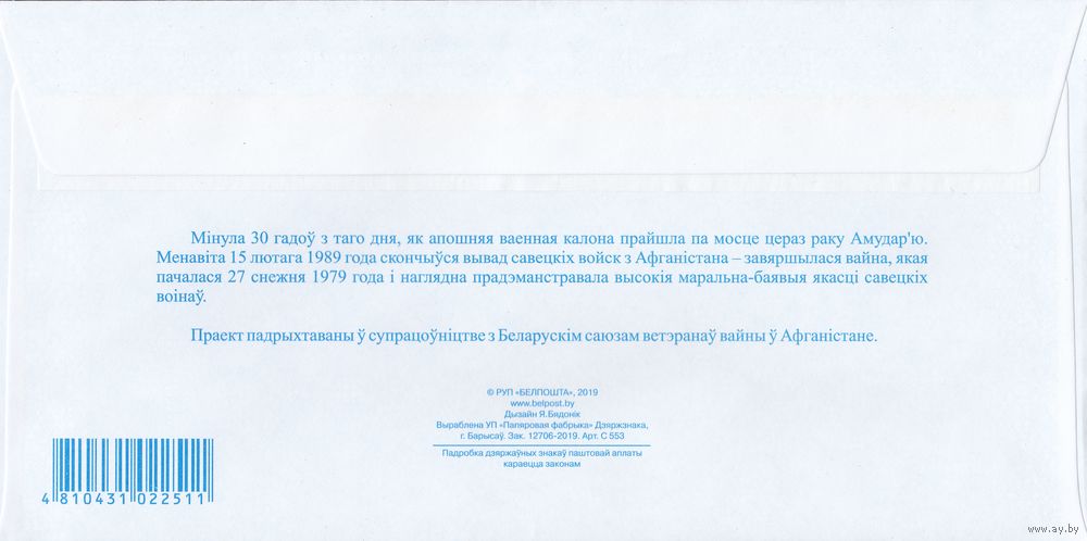 Беларусь 2019 30-летие вывода советских войск с афганистана (к4)