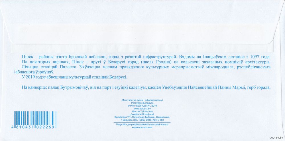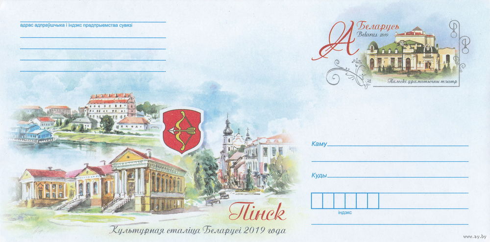 Беларусь 2019 ХМК с ОМ Пинск - культурная столица Беларуси 2019 г. (к4)