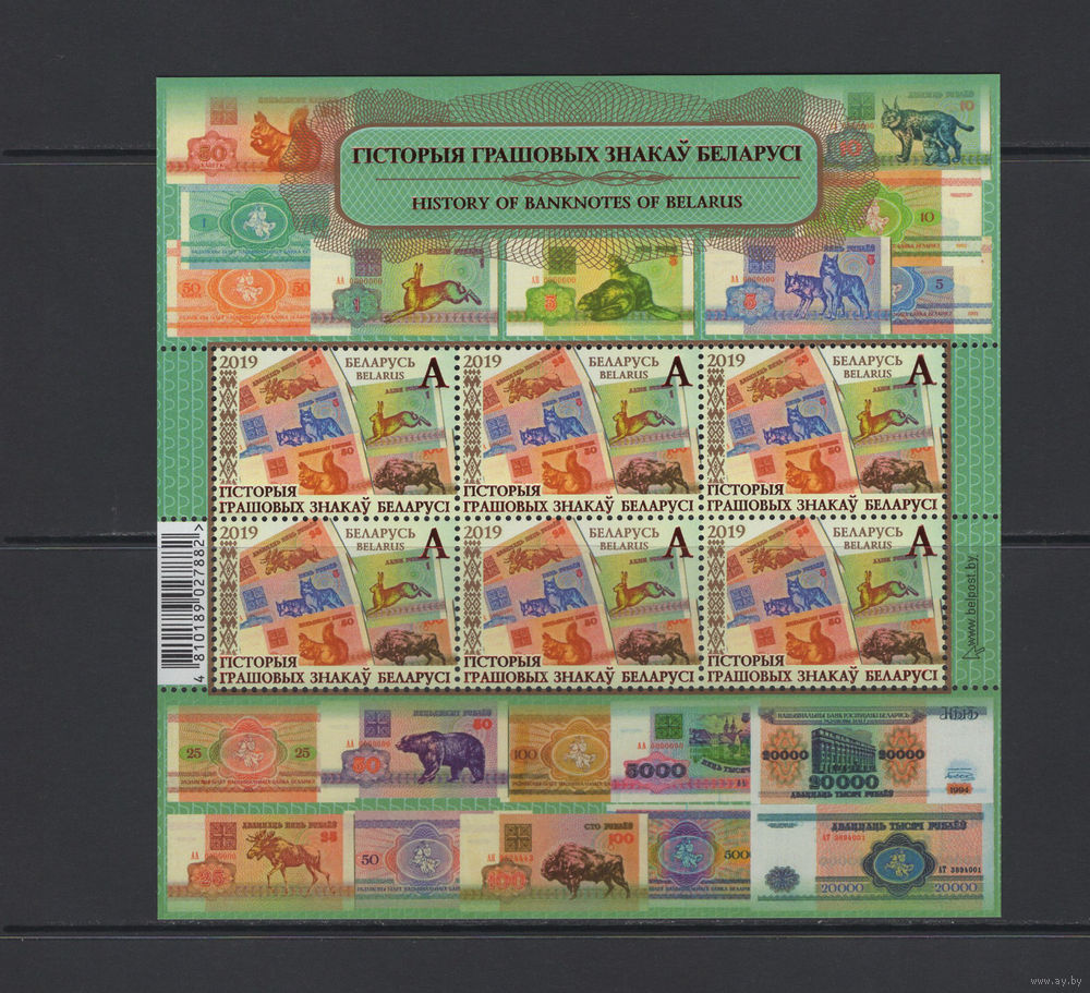 Беларусь 2019 Малый лист "История денежных знаков Беларуси"