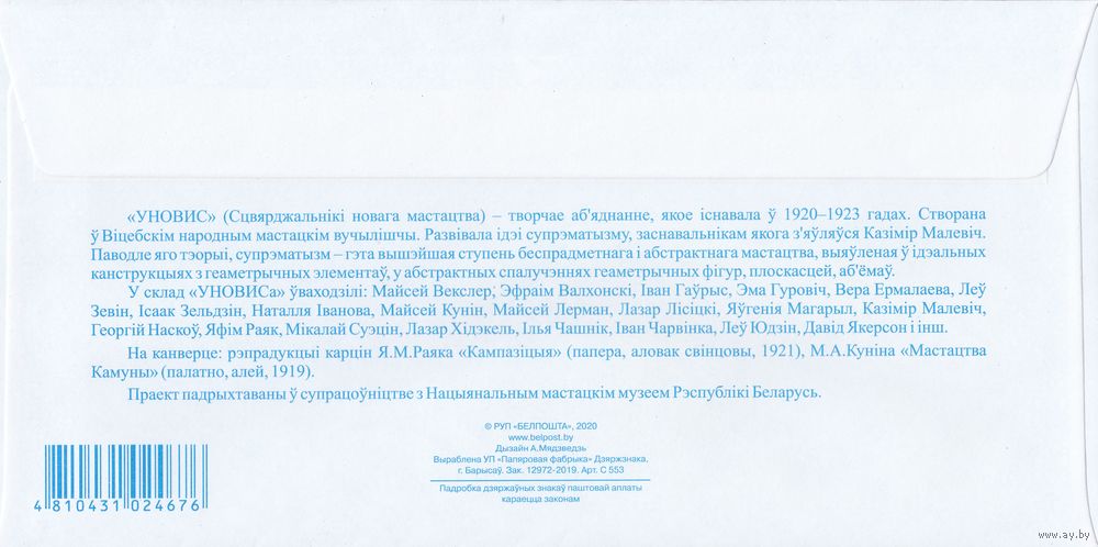 Беларусь 2020 100 лет художественному объединению УНОВИС (к4)