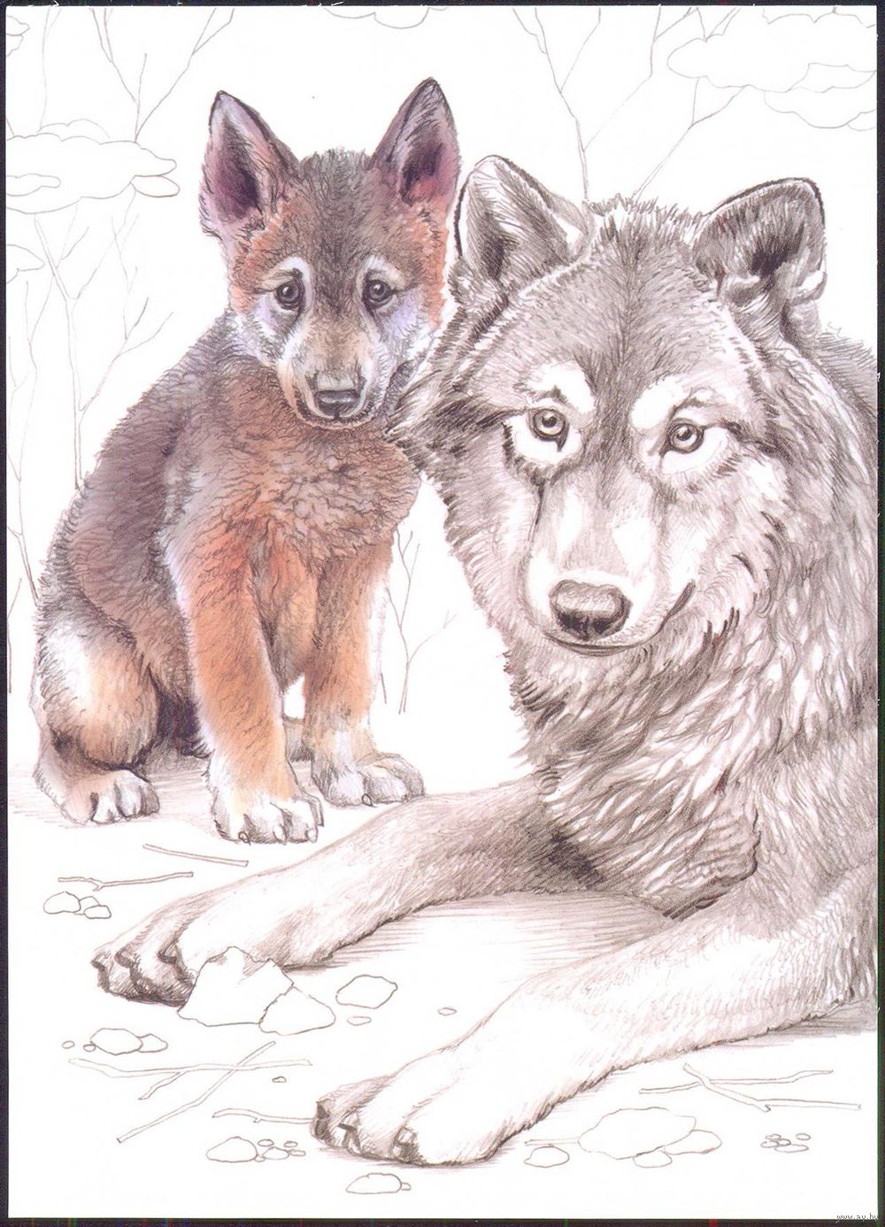 Беларусь 2020 фауна рисунок волк и волчонок