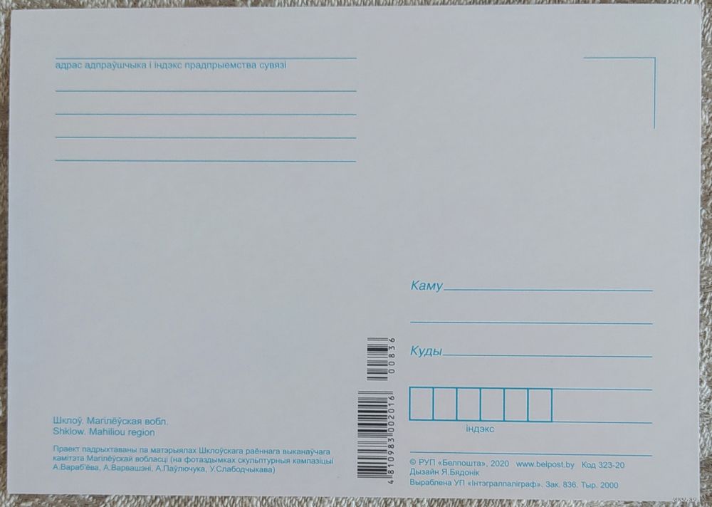 Беларусь 2020 открытка, Шклов.