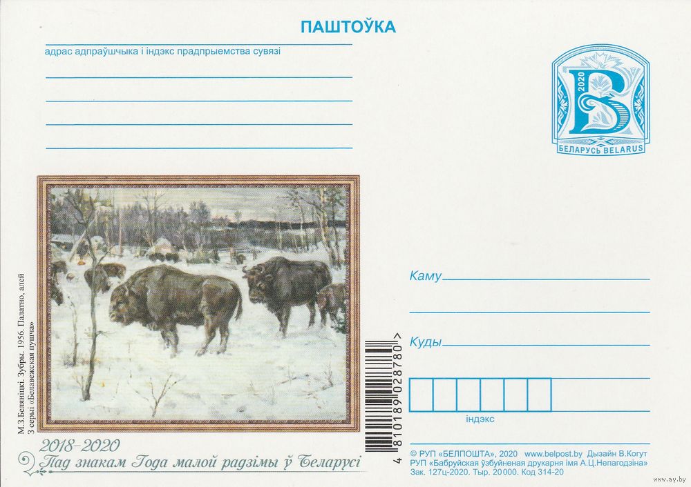 Беларусь 2020 ПК М.З. Беленицкий. Зубры (к5)