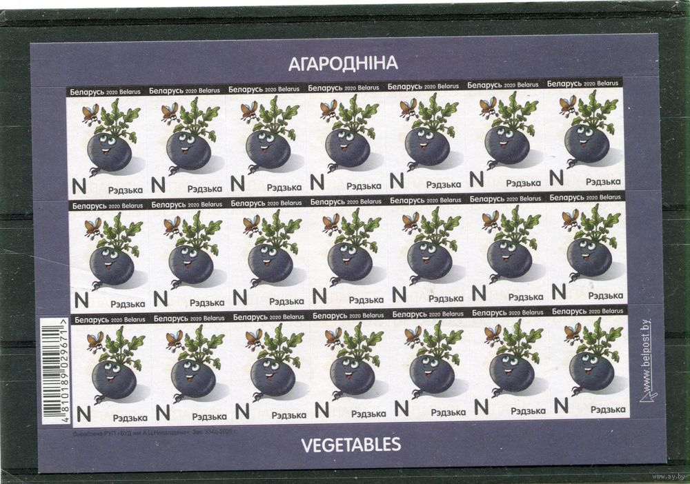 Беларусь 2020. Стандарт. Овощи. Редька. Номинал N. Заказ 334ц-2020. Лист