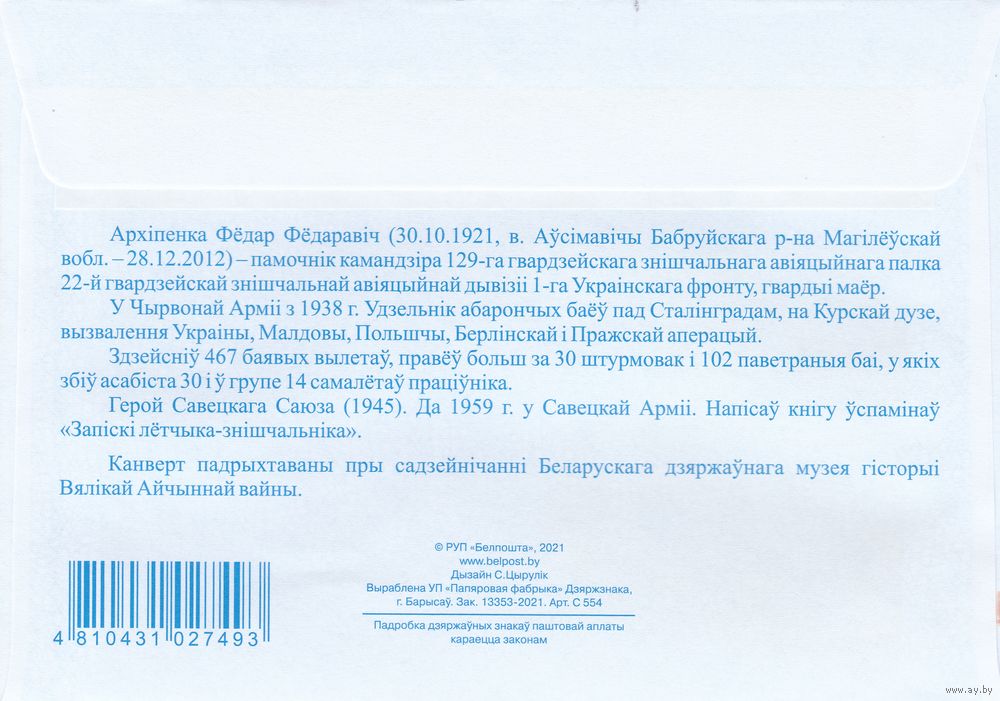 Беларусь 2021 Герой Советского Союза Федор Федорович Архипенко (к4)