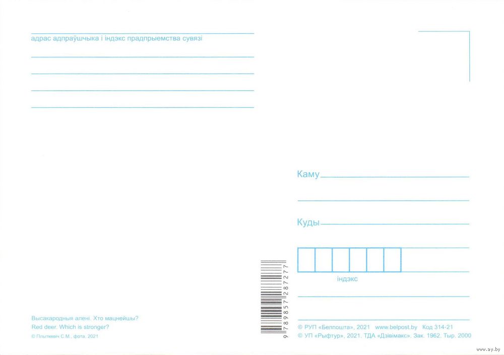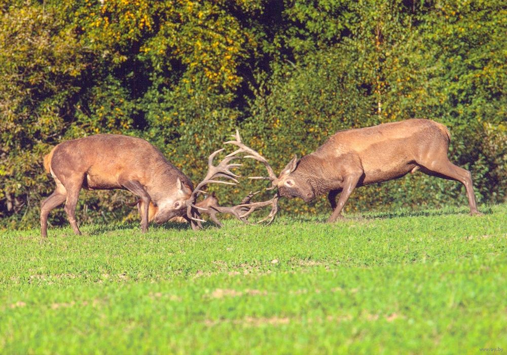 Беларусь 2021 открытка фауна благородный олень поединок
