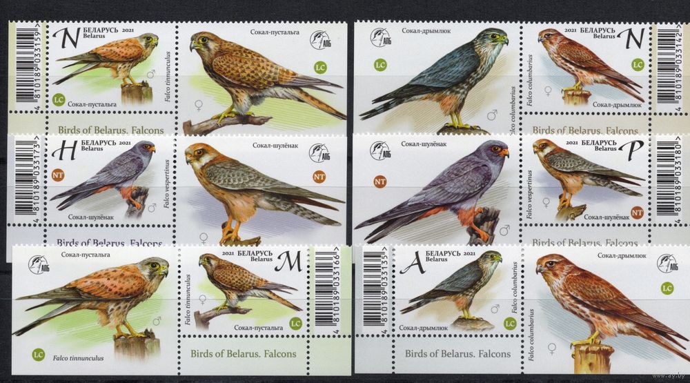 Беларусь 2021.Птицы.Соколы 8 марок+купоны (1146)