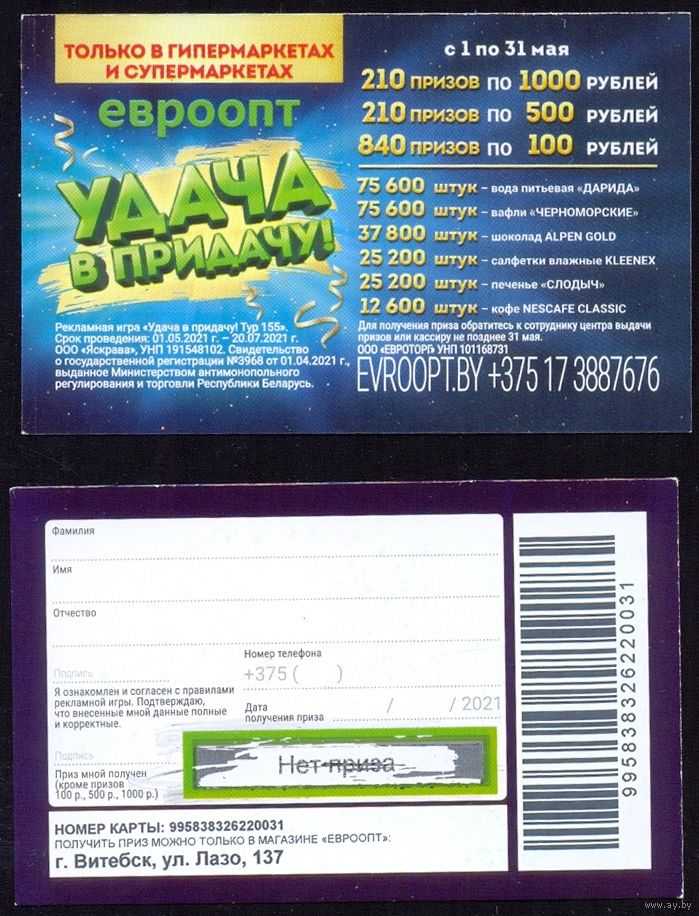 Все приписаны к магазину в одном месте. Витебск ул.Лазо 137