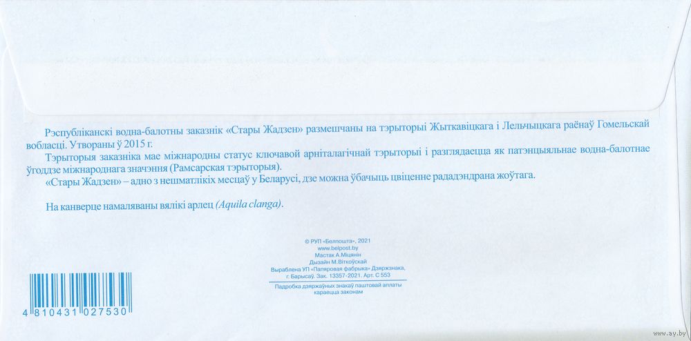 Беларусь 2021 Заказники Беларуси. Республиканский водно-болотный заказник Жаден (к4)
