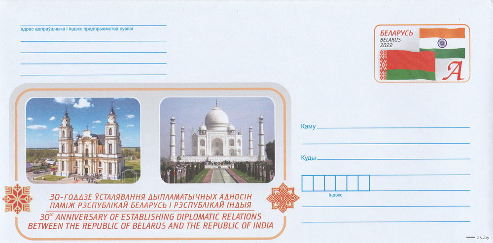 Беларусь 2022 ХМК с ОМ 30-летие установления дипломатических отношений между Республикой Беларусь и Республикой Индия (к4)