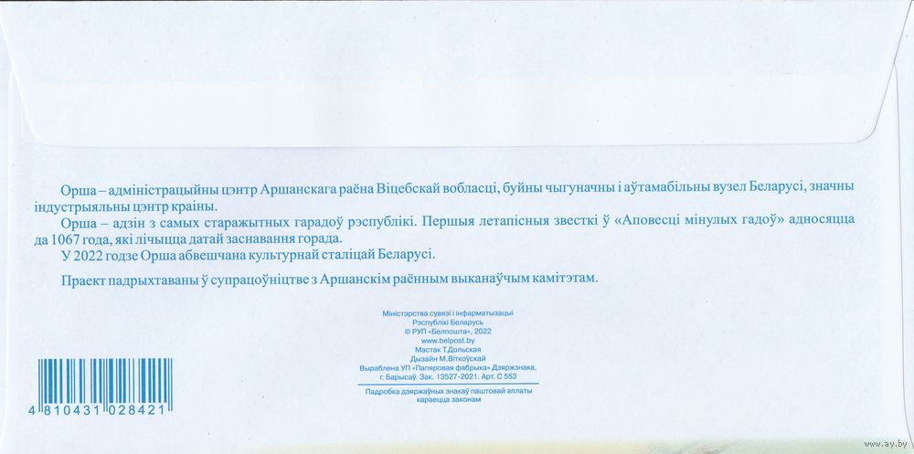 Беларусь 2022 ХМК с ОМ Орша – культурная столица Беларуси 2022 года (к4)
