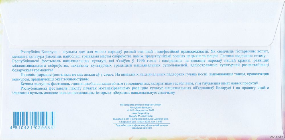 Беларусь 2022 ХМК с ОМ XIII Республиканский фестиваль национальных культур (к4)