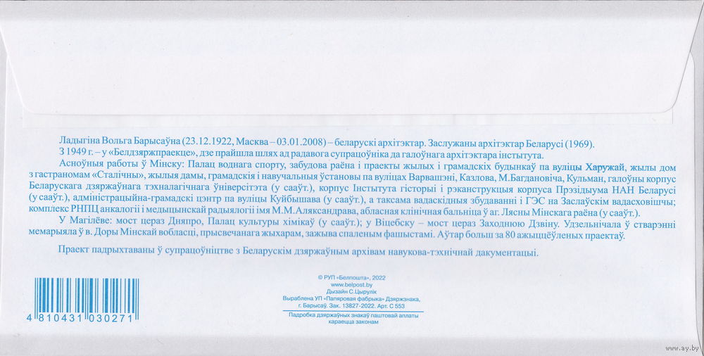 Беларусь 2022 Известные личности Беларуси Ольга Борисовна Ладыгина (к4)