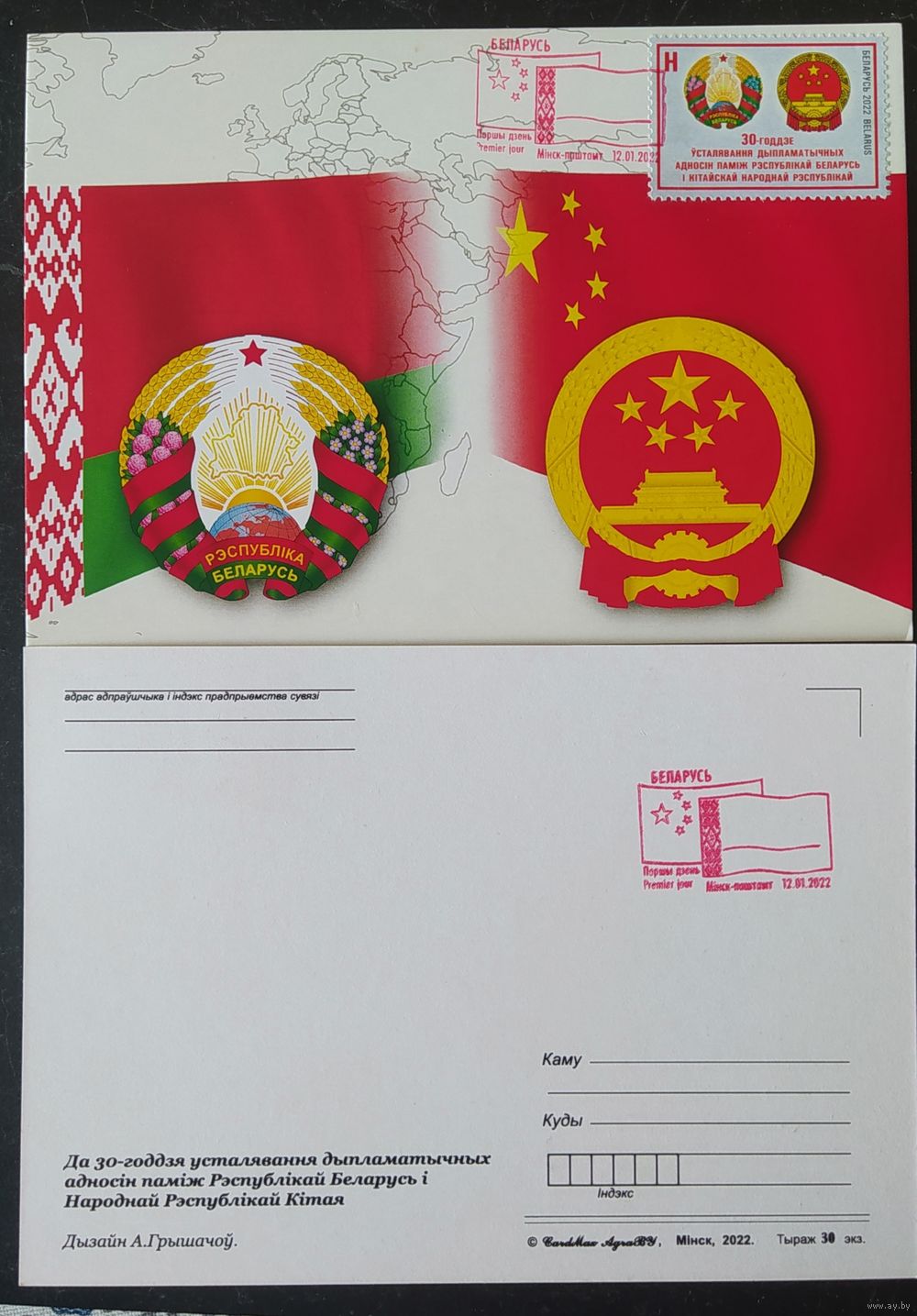 Беларусь 2022 КМ 30л дып.отноений, тираж 30 экз.