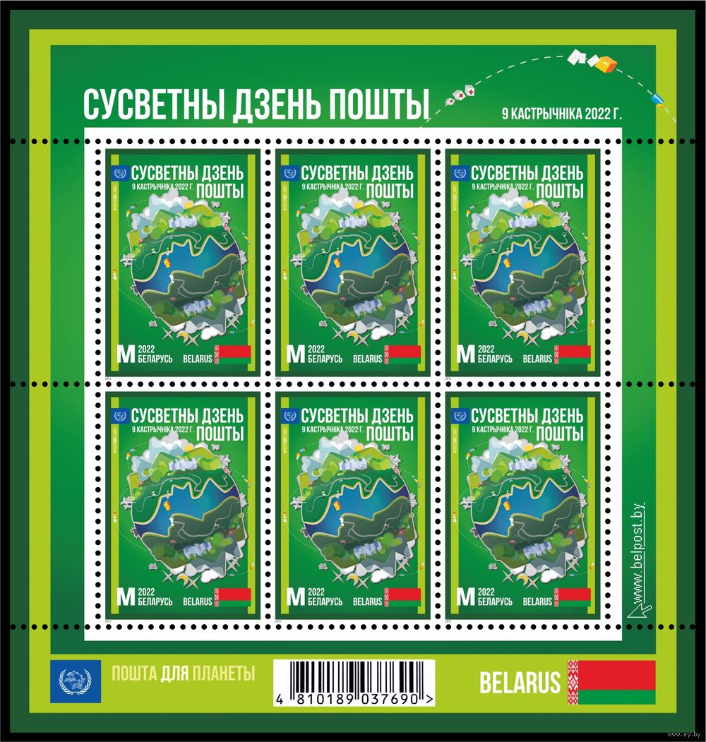 БЕЛАРУСЬ 2022 малый лист Всемирный день почты MNH