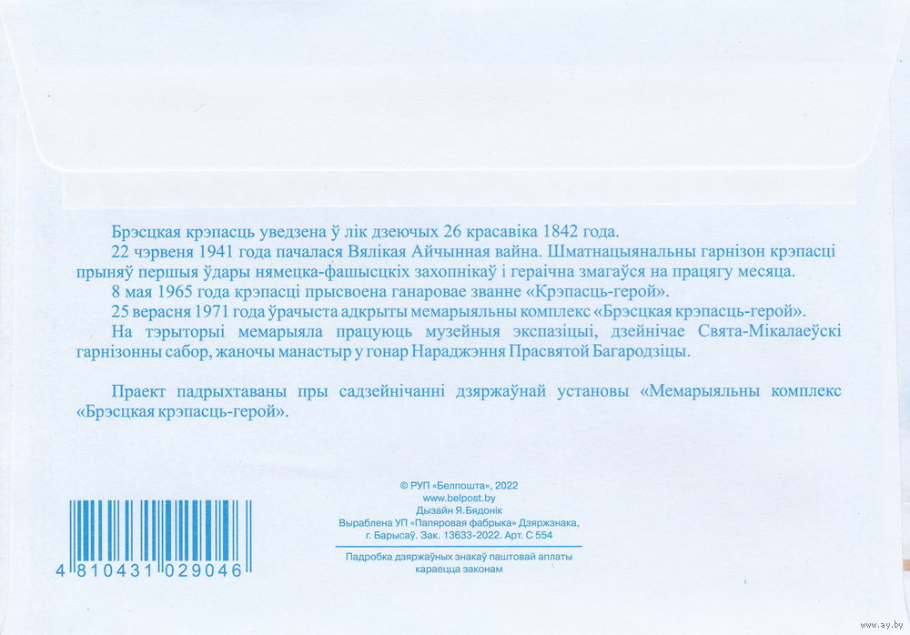 Беларусь 2022 Мемориальный комплекс Брестская крепость-герой (к4)