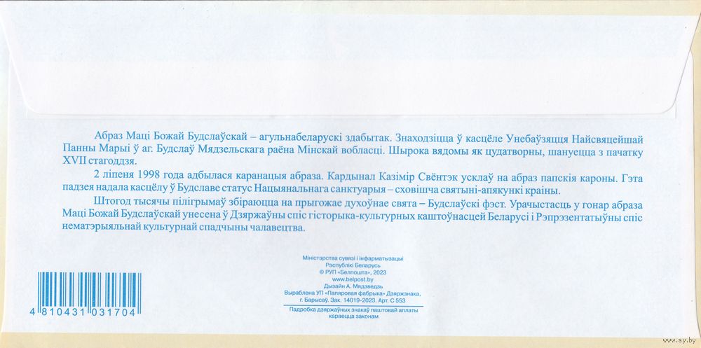 Беларусь 2023 ХМК с ОМ 25-летие коронации иконы Матери Божьей Будславской (к4)