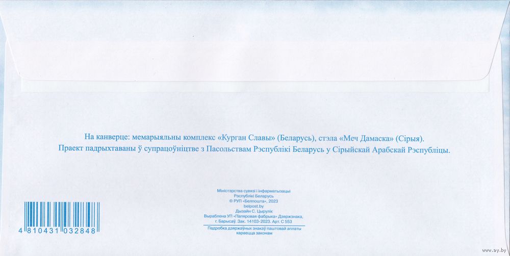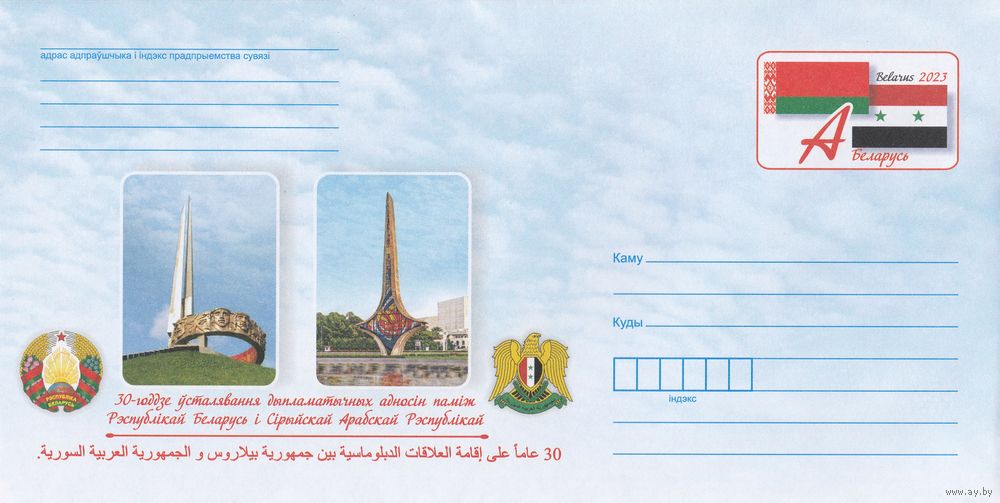 Беларусь 2023 ХМК с ОМ 30-летие установления дипломатических отношений между Республикой Беларусь и Сирийской Арабской Республикой (к4)