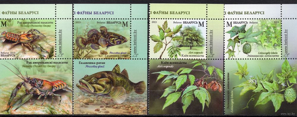 Беларусь 2023. Инвазивные виды флоры и фауны 4 марки+купоны (1261)