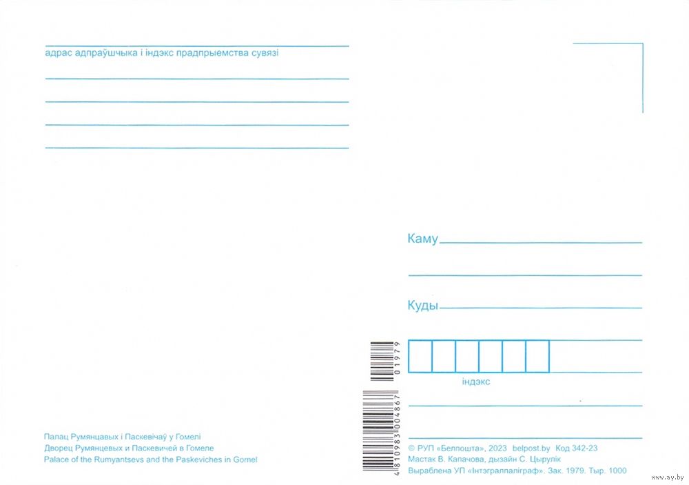 Беларусь 2023 открытка Гомель Дворец Румянцевых и Паскевичей