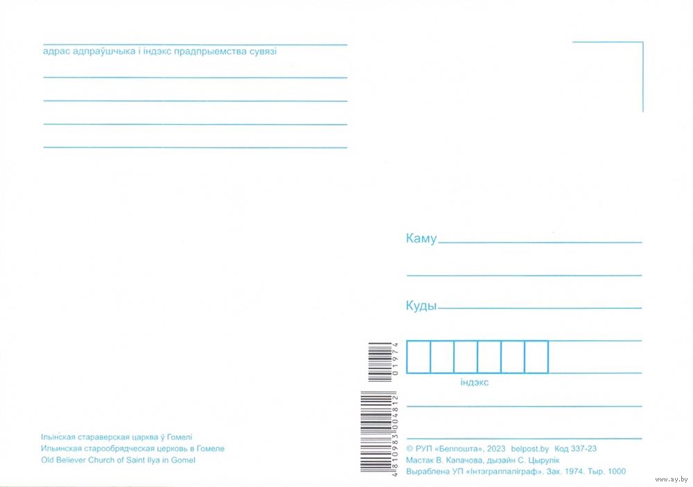 Беларусь 2023 открытка Гомель Ильинская старообрядческая церковь