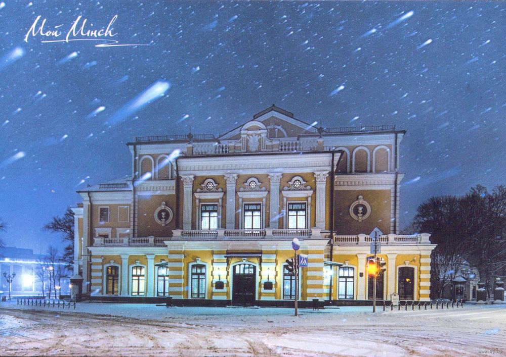 Беларусь 2024 Мой Минск театр им. Я.Купалы звездопад ночной вид
