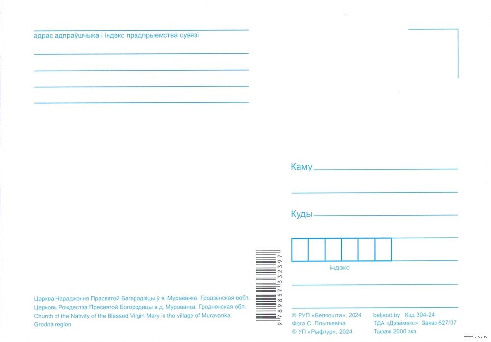 Беларусь 2024 открытка Мурованка церковь