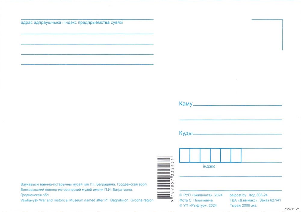 Беларусь 2024 открытка Волковыск музей Багратиона бюст