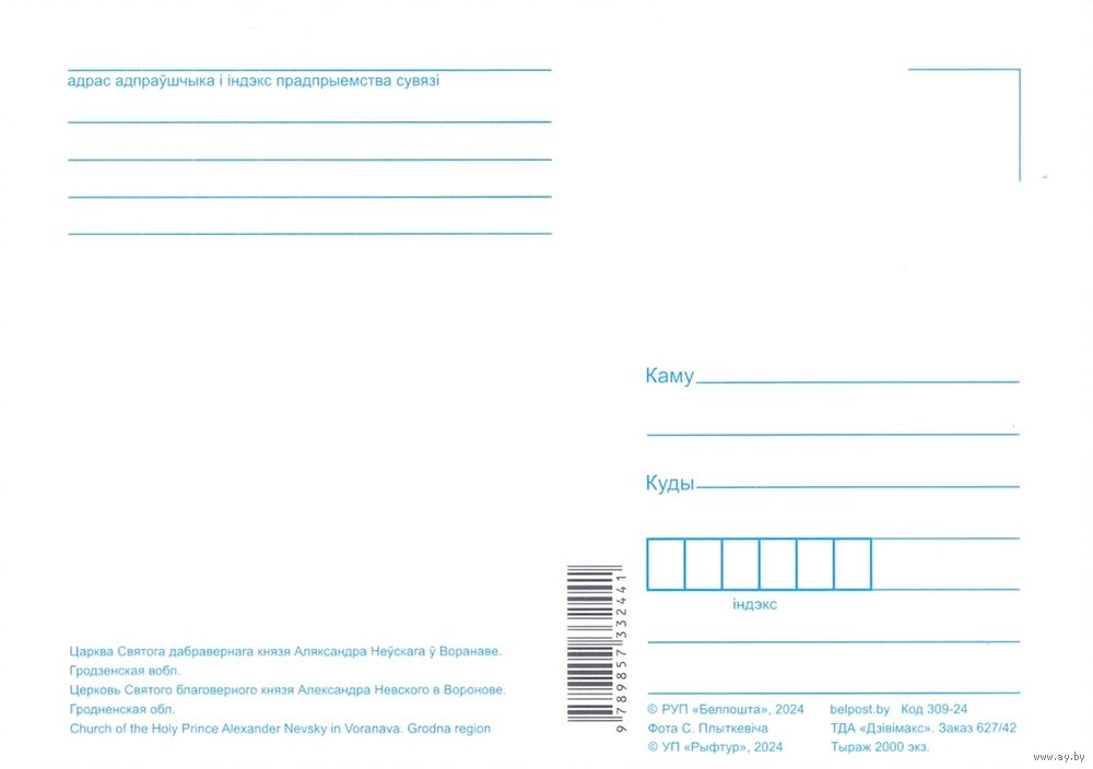 Беларусь 2024 открытка Вороново церковь А.Невского