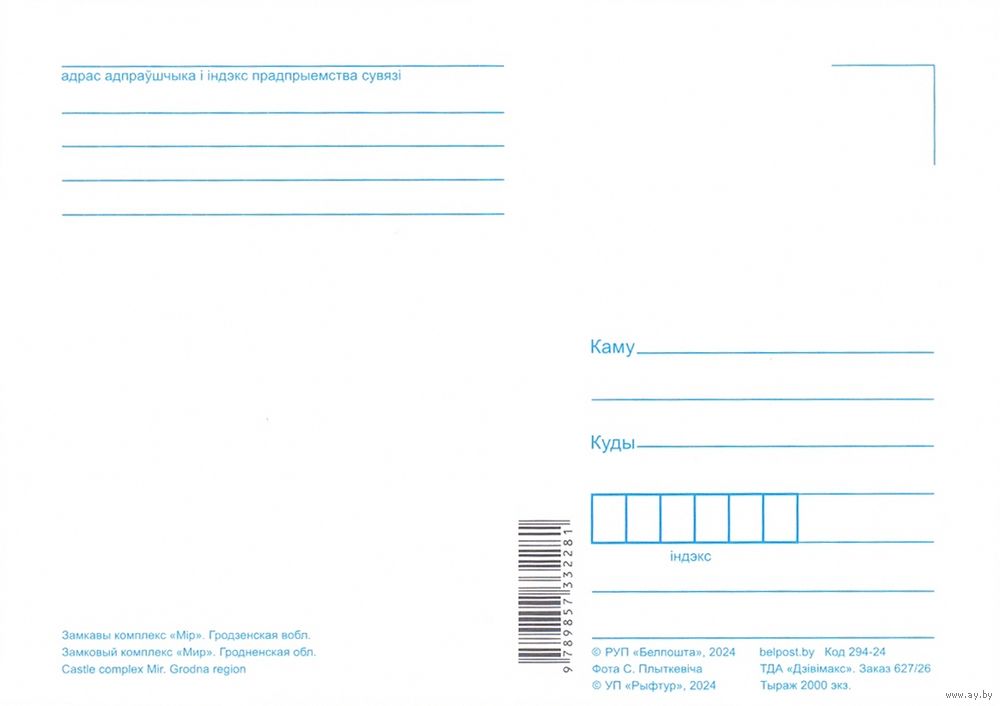 Беларусь 2024 открытка замковый комплекс "Мир"