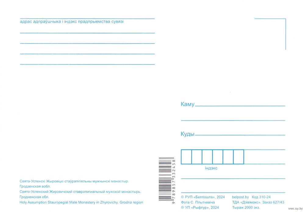 Беларусь 2024 открытка Жировичи монастырь