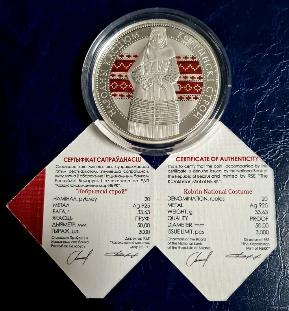 Шикарная монета-Серебро 20 рублей Серия "Беларускі народны касцюм" Кобринский строй.