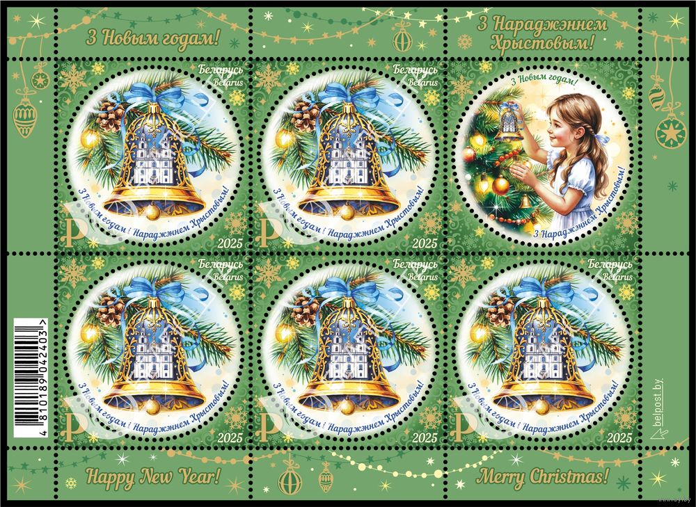 Беларусь 2025г "С Новым годом и Рождеством Христовым!"MNH
